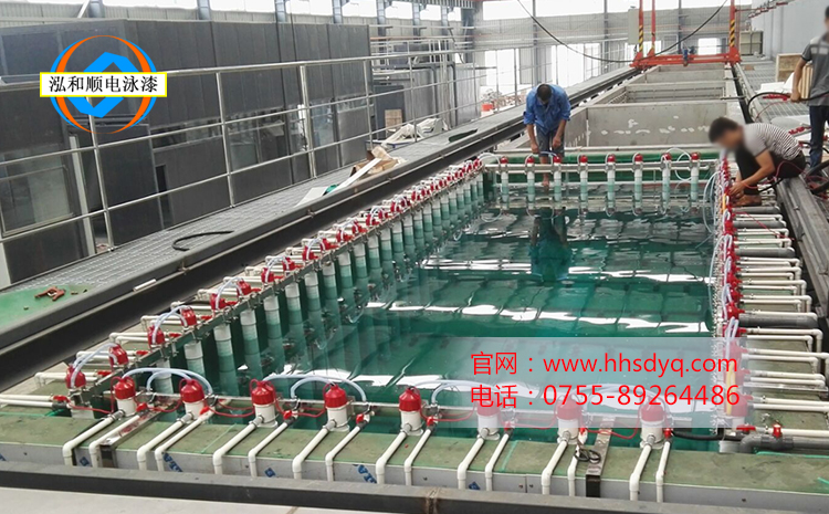 汽車電泳涂裝生產(chǎn)線,此涂裝流水線是一條采用龍門行車架為運輸裝置的電泳涂裝線。